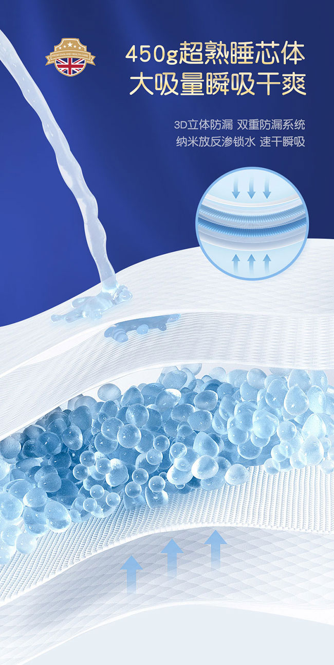 對于媽媽們來說,“一夜好眠”堪稱奢侈品,而麥卡米卡的大吸量芯體就是睡眠“救星”。450g超熟睡全芯體采用第三代技術(shù),搭配納米反滲鎖水系統(tǒng),吸量驚人且速干瞬吸,即便寶寶夜間尿量增多,也能快速鎖住水分不反滲。加上3D立體防漏與雙重防漏設(shè)計,從腰圍到腿圍全方位守護,再也不用擔(dān)心漏尿弄濕床單。干爽效果長達12小時,真正實現(xiàn)“一夜一片安心睡”,寶寶睡眠質(zhì)量不打折,媽媽也能擁有完整的休息時間。