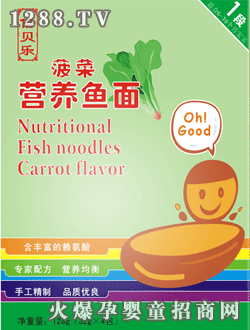 倍貝樂海苔營養(yǎng)魚面是深圳市弘添喜商貿(mào)有限公司旗下產(chǎn)品,采用現(xiàn)代生產(chǎn)設備,結合百年手工工藝,將先進、科學的營養(yǎng)配方融入傳統(tǒng)食品、針對生理特點研制而制成,松軟可口,營養(yǎng)豐富,適合8-36個月食用。