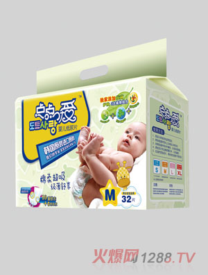 點(diǎn)點(diǎn)愛(ài)嬰兒紙尿褲是韓國(guó)安秀集團(tuán)專門針對(duì)嬰兒研發(fā)出來(lái)的一款嬰兒紙尿褲,它具有大容量,超能吸的特點(diǎn),它能大量蓄存bao--bao尿液,即使夜晚bao--bao的尿再多,也能保持整夜干爽,同時(shí)他還提取3大植物精華,讓bao--bao整夜香甜,同時(shí)也讓bao--bao遠(yuǎn)離紅屁屁。