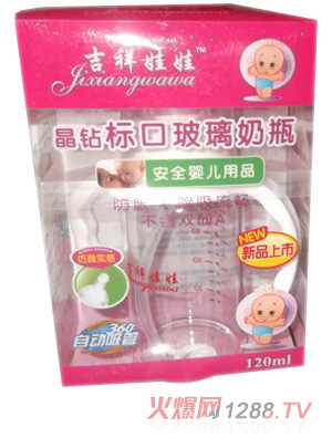 吉祥娃娃是香港吉祥娃娃嬰童用品有限公司的品牌,主營的產(chǎn)品主要有吉祥娃娃晶鉆玻璃標口奶瓶、晶鉆玻璃寬口奶瓶、寬口玻璃防燙奶瓶、pp材質(zhì)奶瓶、嬰幼兒奶嘴等多個輔喂產(chǎn)品系列,設(shè)計美觀,使用方便,且物美價廉。