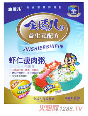 金適兒蝦仁瘦肉粥是針對(duì)bao--bao營(yíng)養(yǎng)需求特別研制,采用科學(xué)配方,特別添加蝦肉蝦仁,不僅營(yíng)養(yǎng)均衡全面,而且口味更佳,適合挑食、厭食的bao--bao食用,是眾多bao--bao的輔食專家。