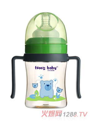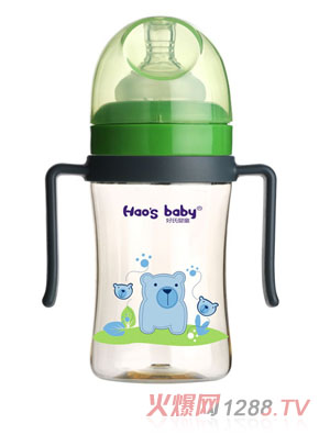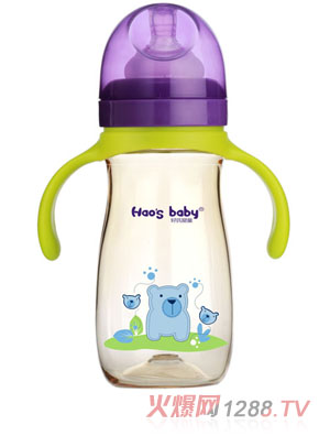 好氏嬰童幼兒寬口PP奶瓶,寬口徑瓶身,易于調(diào)奶和清洗,加上把柄,使用起來更方便,其他配件采用安心材質(zhì)聚丙烯PP制成,可煮沸消毒。